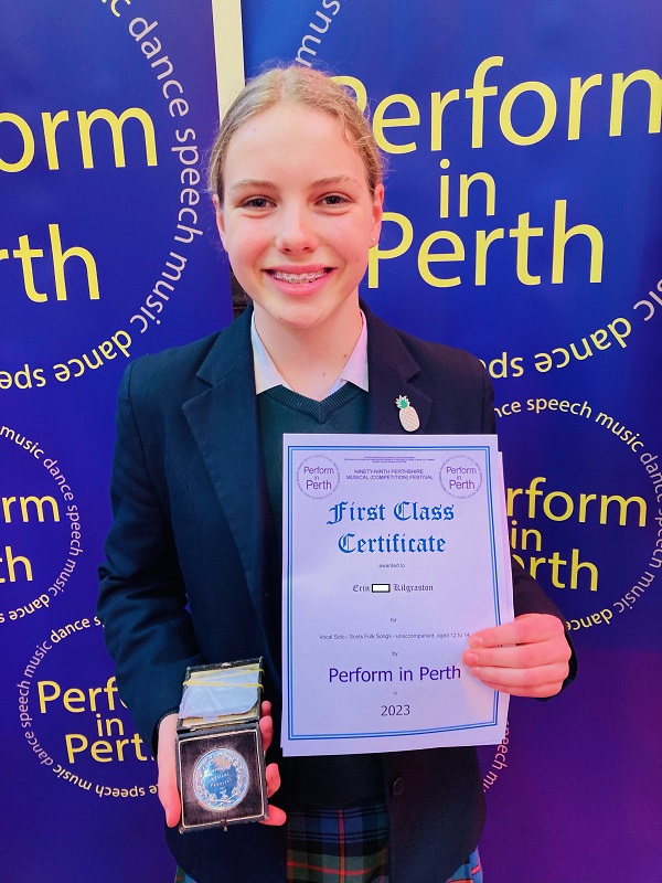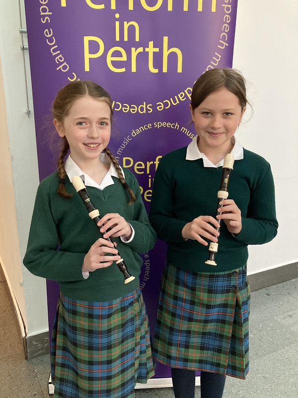 Upper Four’s Erin won two classes (unaccompanied folk song and accompanied lullaby) and came second in the Disney songbook class. She was also awarded a silver medal for the folk song class. A special mention also to Lower Third’s Florence and Georgiana who won their duo recorder class at Perform in Perth on Monday, and have been practising with Mrs Stewart since the beginning of the year.