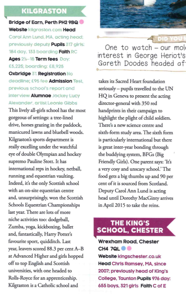 Following a visit to Kilgraston from a Tatler ‘spy’ last term, we’re delighted to share the review of our school in Tatler’s prestigious Schools Guide.