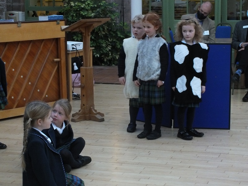 In a bright and colourful assembly, each class in our Junior School performed or presented on different elements of the Harvest Festival. We were treated to a performance of ‘Old Macdonald’ by our youngest pupils – in French, while each Upper First pupil gave a presentation about a different fruit or vegetable from around the world. Lower Second read a Harvest Time Poem and Upper Second performed ‘The Rainbow People’, a story about friendship and people being the same. Pupils in Lower Third talked about different cereals and then Upper Third performed ‘The Ant and the Grasshopper’. We also welcomed an address by Rev. Allan Wilson, Minister of Dunbarney and Forgandenny who used the characters of ‘Lola and Charlie’ to discuss community.