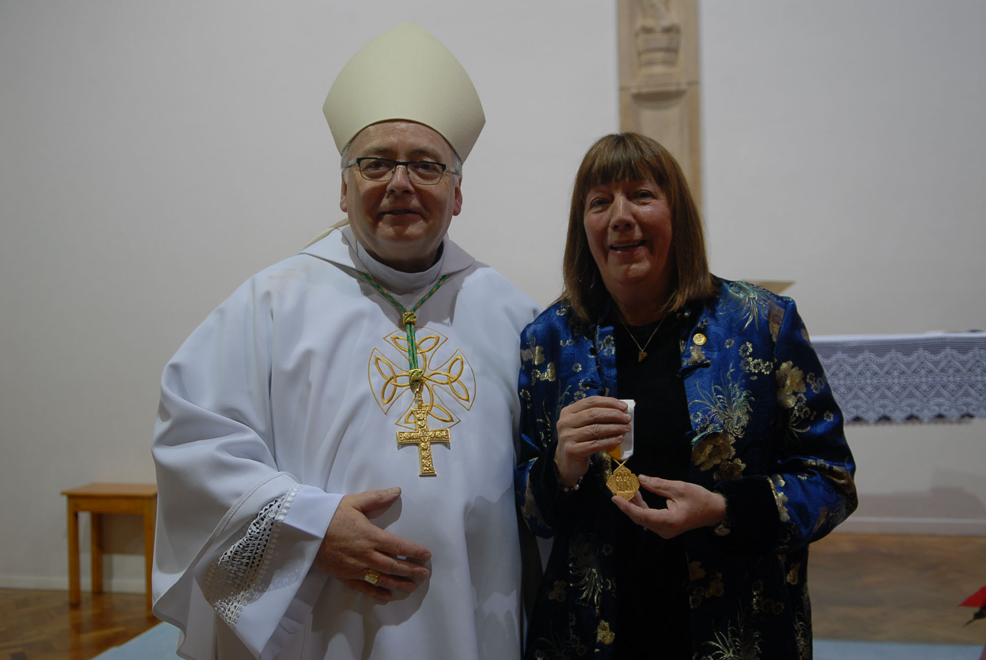 In the presence of the whole school community and guests, Mrs Margaret McCabe returned to Kilgraston School to be presented with the Pro Ecclesia et Pontifice, the highest medal that can be awarded to the laity by the Pope in recognition of her services to Catholic education. The medal was presented by Bishop Stephen Robson of the Diocese of Dunkeld. Bishop Robson concelebrated Mass with Monsignor Hendry, Monsignor Drysdale, Canon McInally and Fr Pletts who have all served Kilgraston over the last 20 years.
