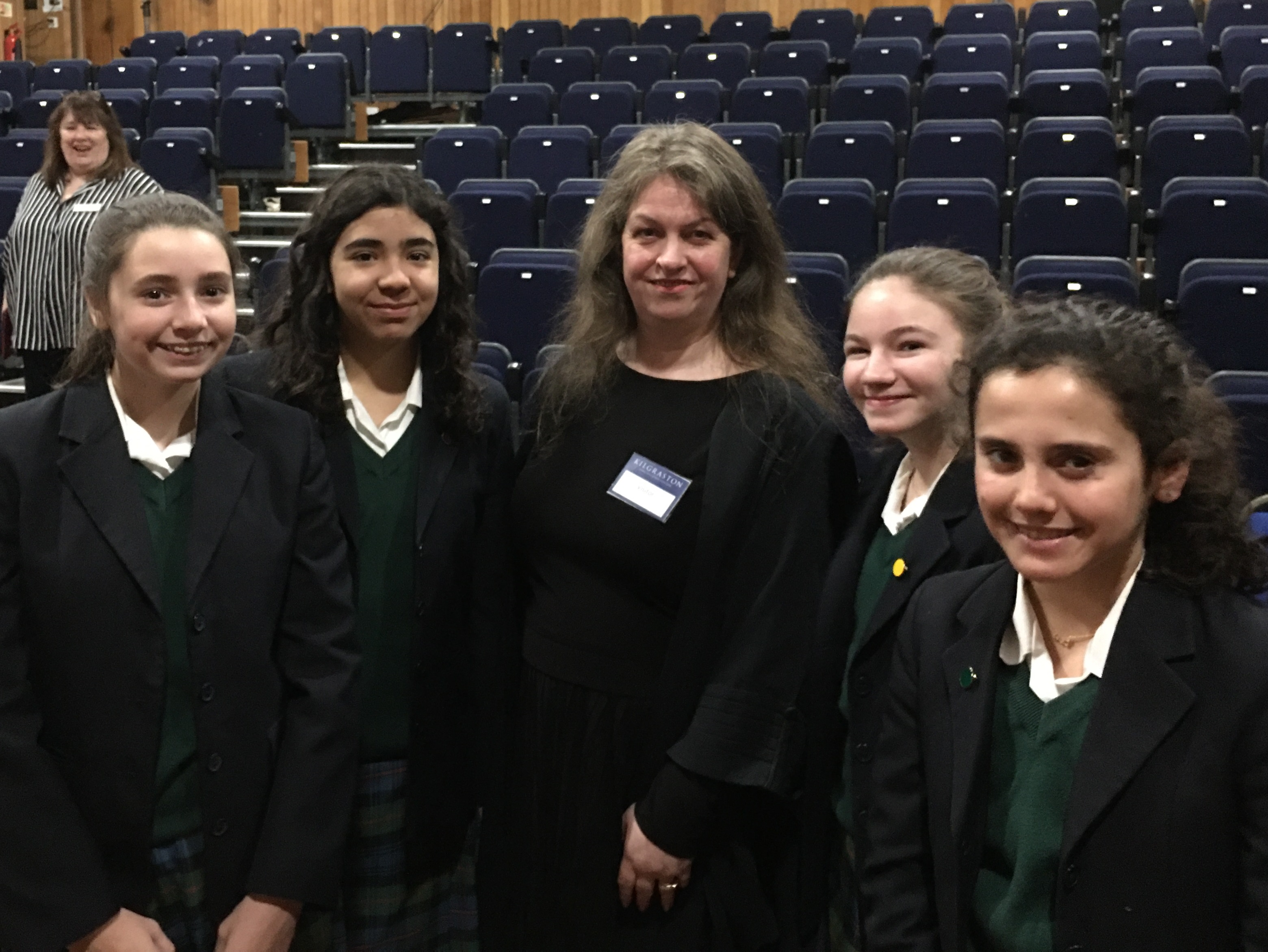Pupils waiting to speak to the visiting Procurator Fiscal, Karon Rollo, after her Women and Business lecture in Kilgraston’s theatre